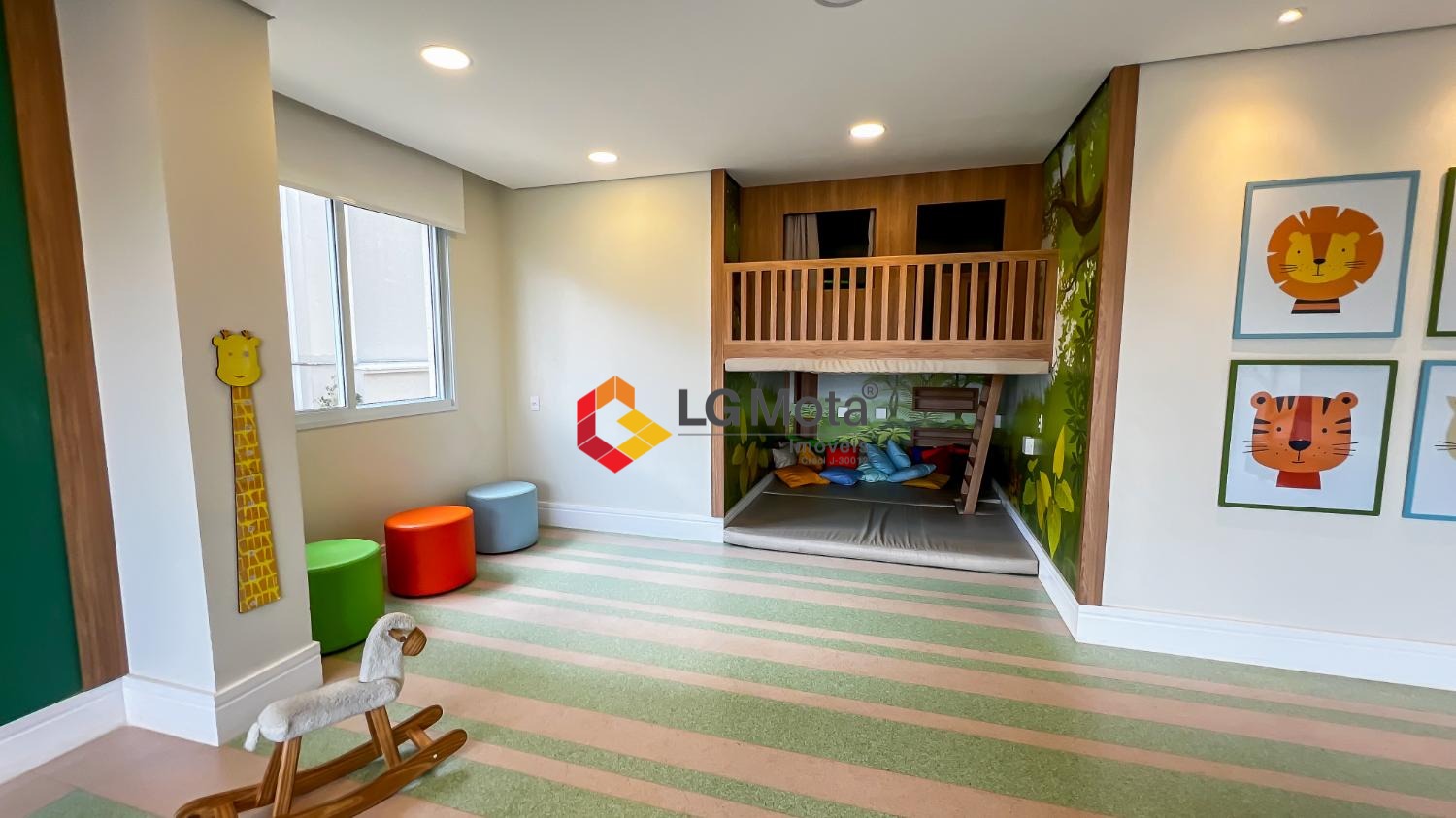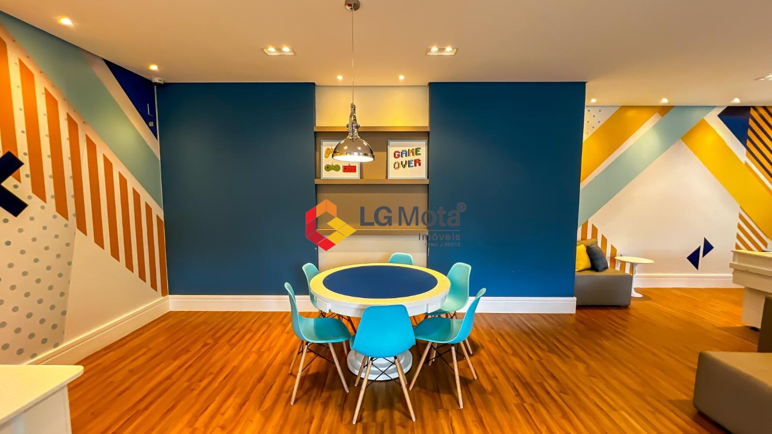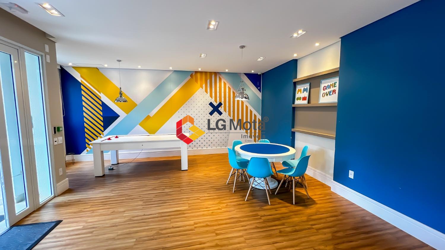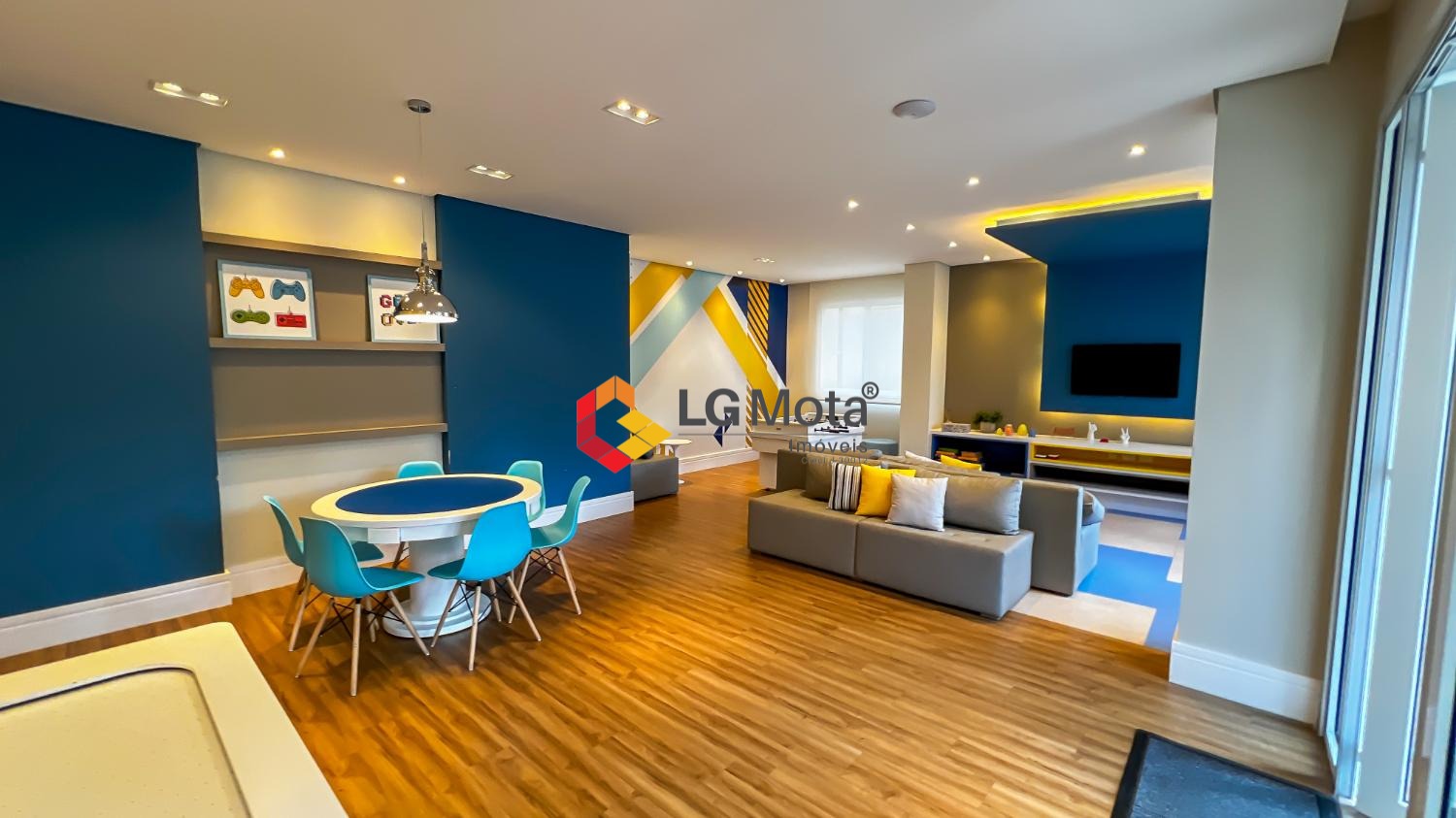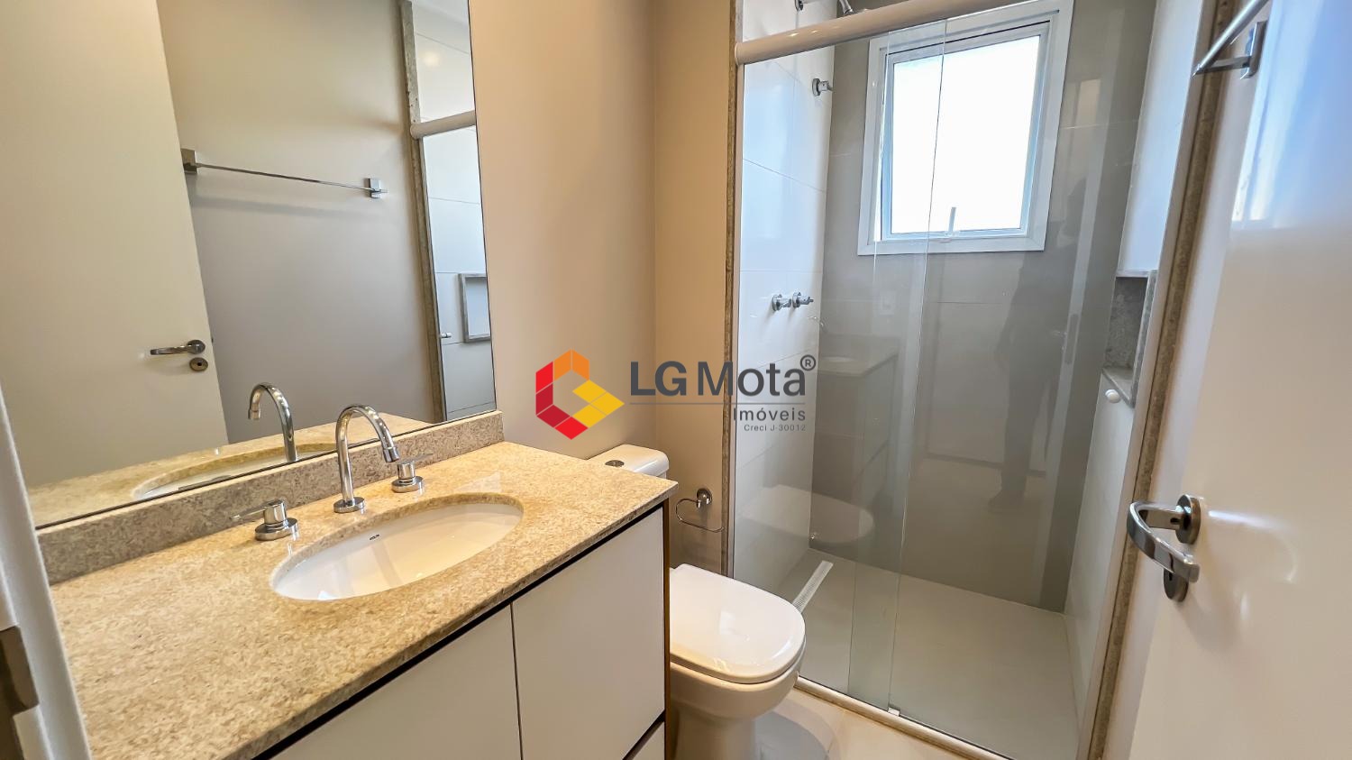 Living ampliado com painel para TV ripado em toda a extensão da parede, mesa de jantar, as duas suítes com armários, suíte master com closet, aparelho de ar no living e nas duas suítes.