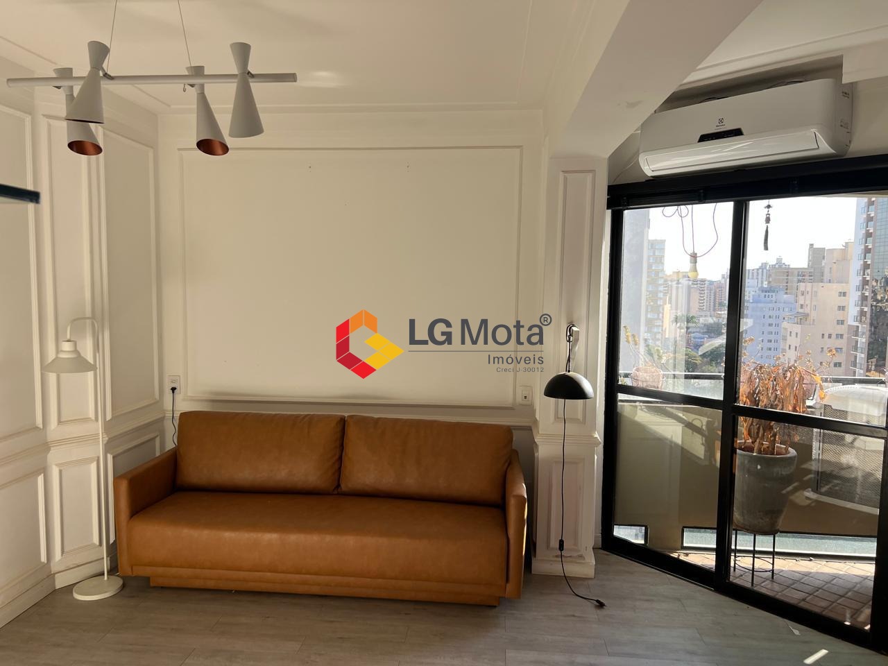 Apartamento com planta diferenciada e ambientes amplos, mobiliado e com ar condicionado.