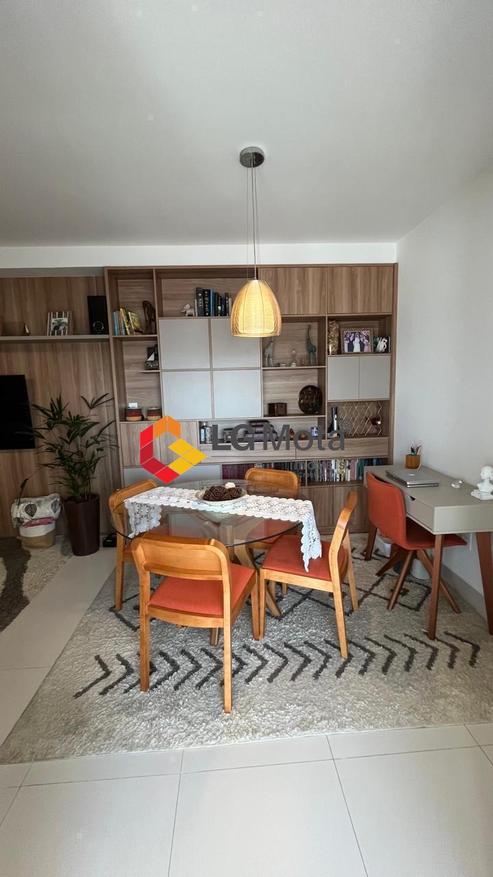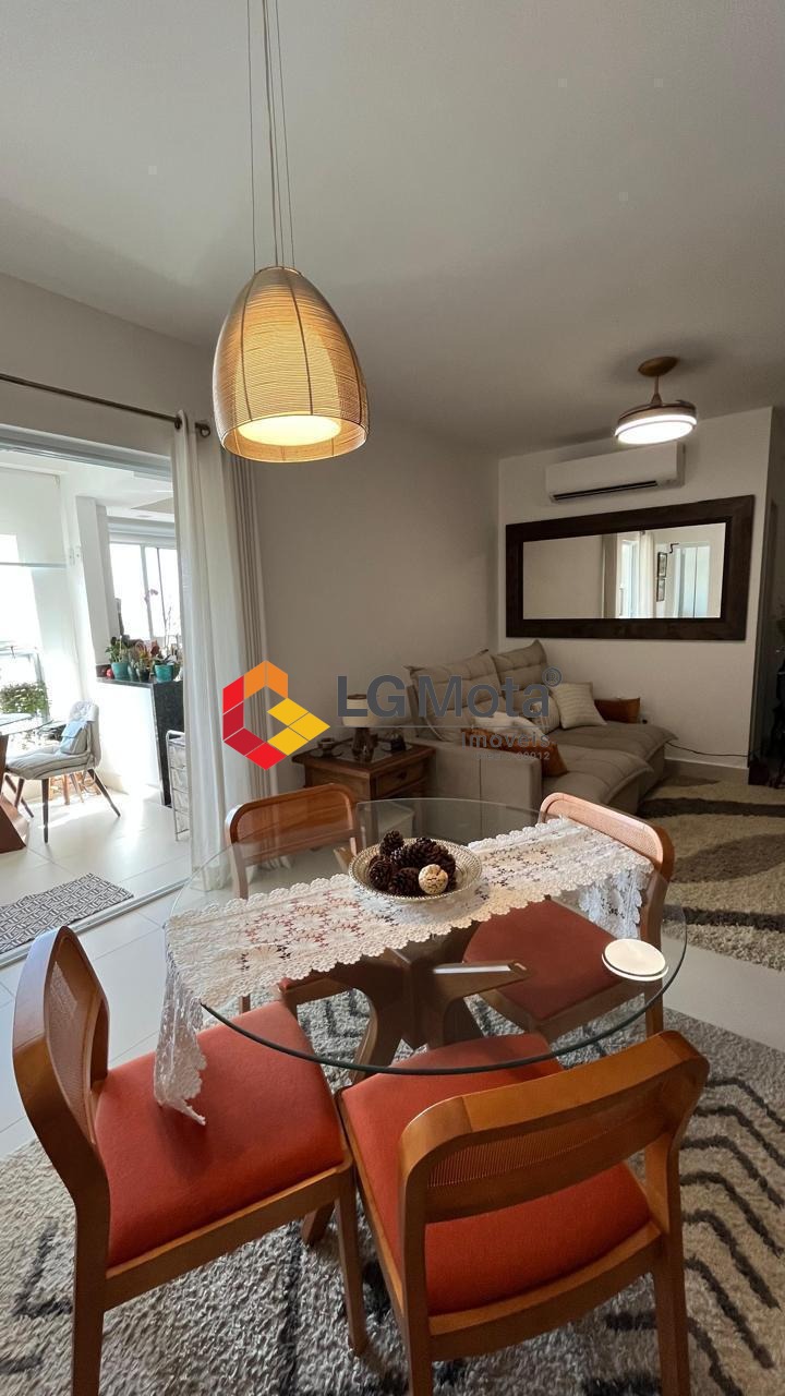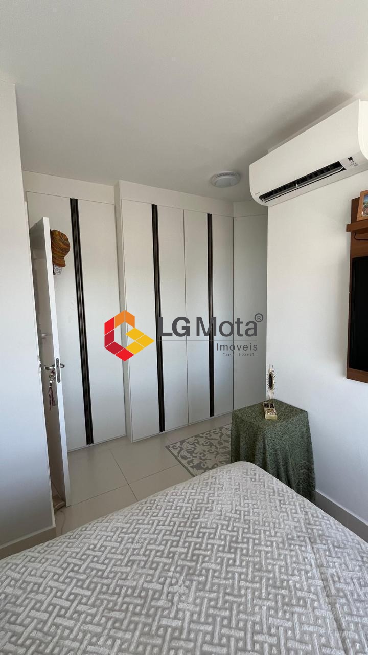 Living ampliado com painel para TV em toda a extensão da parede, mesa de jantar, as duas suítes com armários, suíte master com closet, aparelho de ar no living e nas duas suítes.