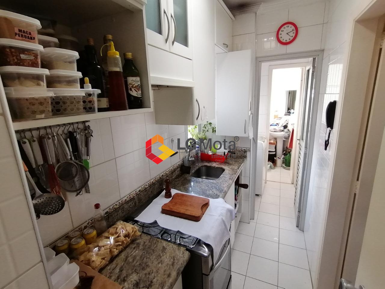 Sala para 2 ambientes, 2 dormitórios com armários, 2 banheiros, cozinha com armários e área de serviço, 1 vaga de garagem.