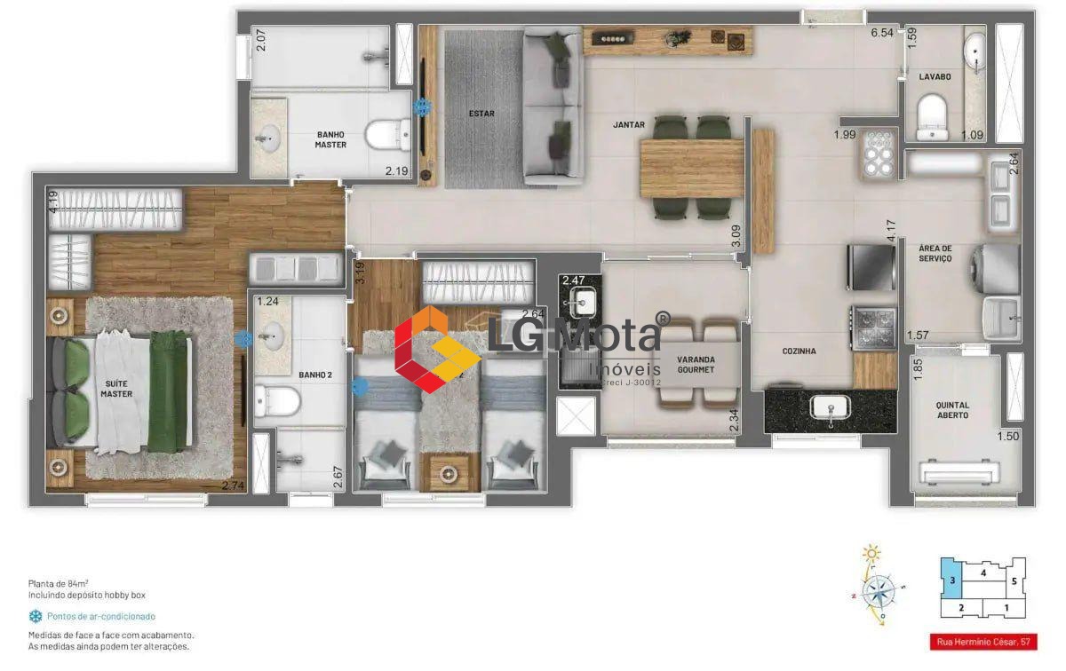 Com 84m² muito bem distribuídos, o imóvel conta com 2 suítes, lavabo, living integrado e uma charmosa varanda gourmet fechada com churrasqueira, perfeita para receber amigos e família. Possui ainda quintal técnico, além de 2 vagas de garagem determinadas e 1 hobby box, trazendo mais praticidade ao dia a dia.