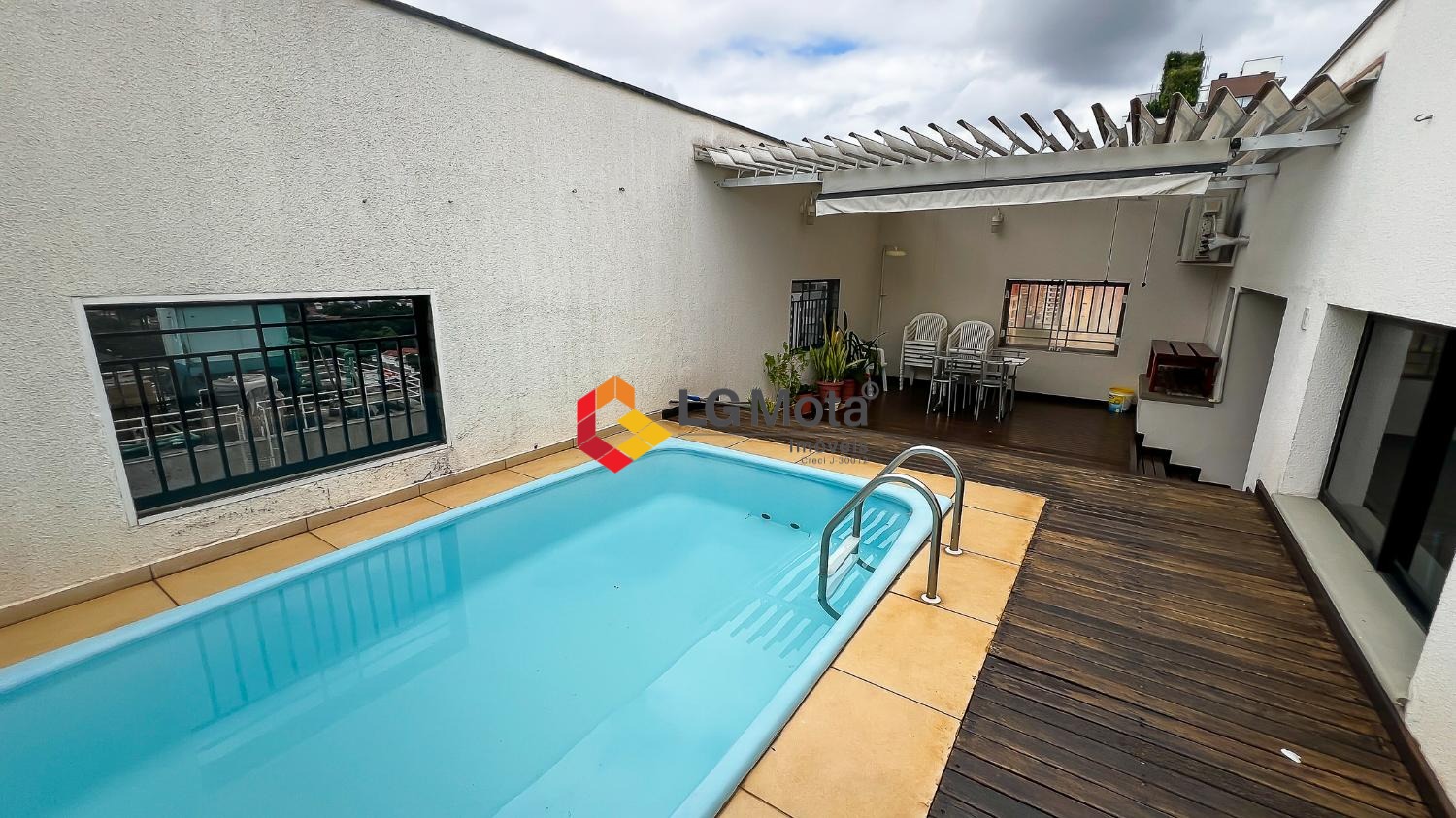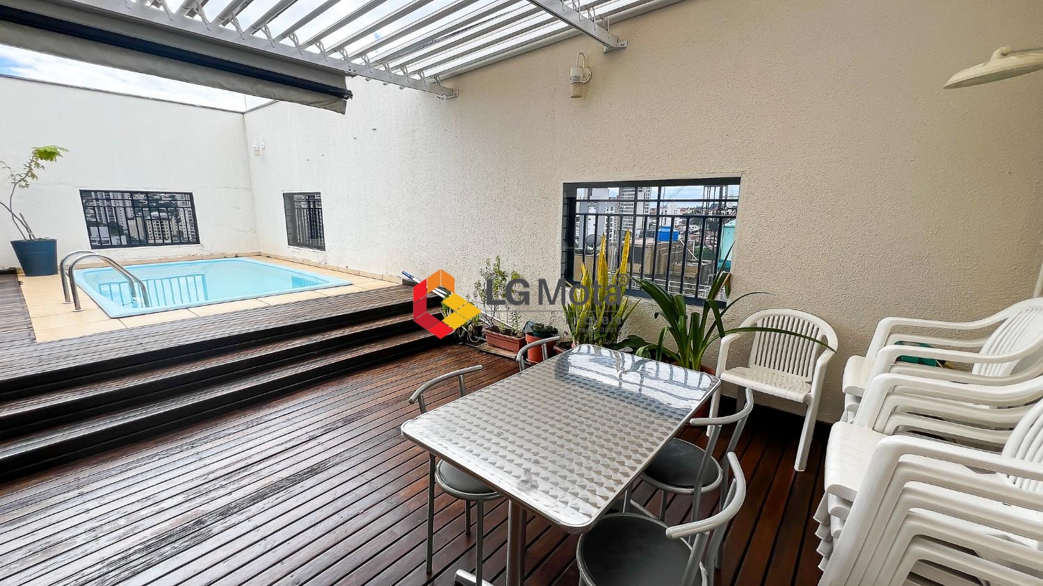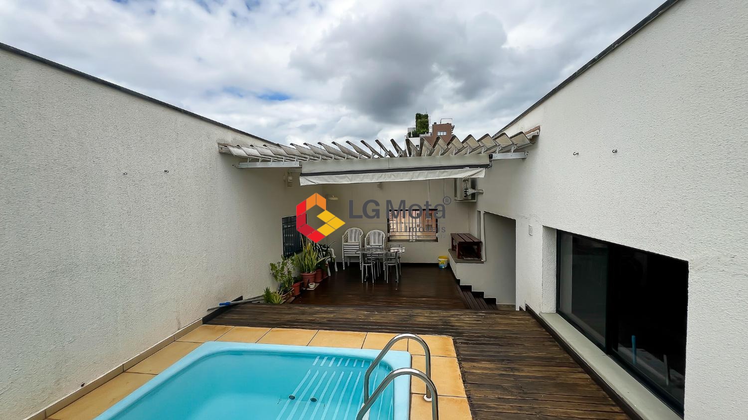 Na área externa do pavimento superior, o destaque fica por conta do espaço gourmet com churrasqueira e piscina, ideal para receber.