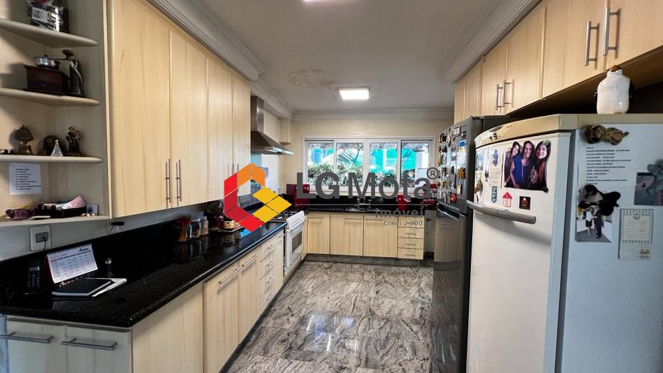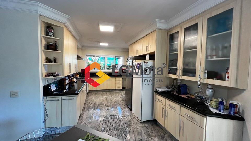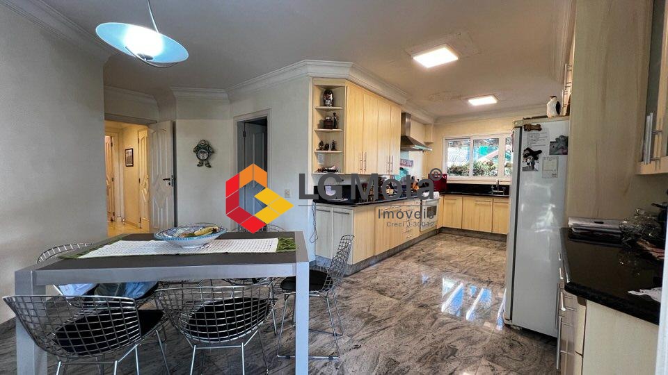 Cozinha planejada com despensa, sala de almoço, área de serviço e dependência de empregada completa.
