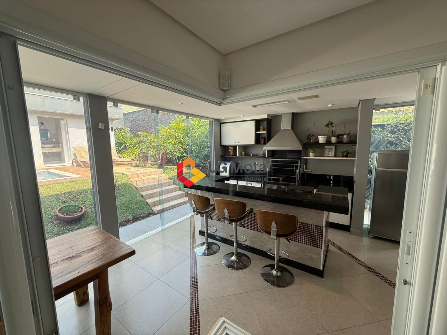 Com 3 suites, sala de TV, escritório, lavabo ,cozinha planejada ,despensa, ampla área de serviço, quarto de empregada, banheiro de empregada, área gourmet com churrasqueira e balcão refrigerado, piscina