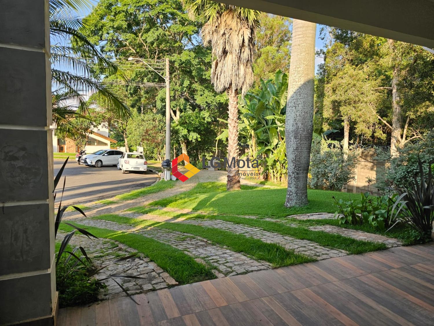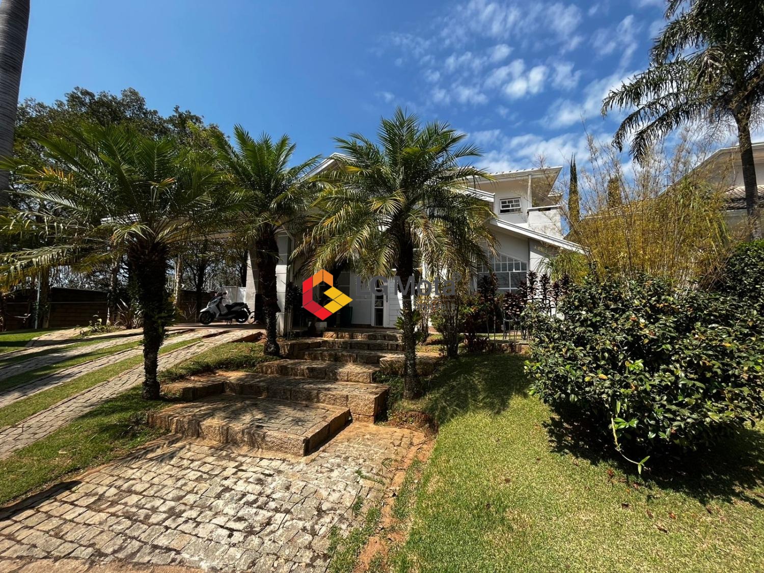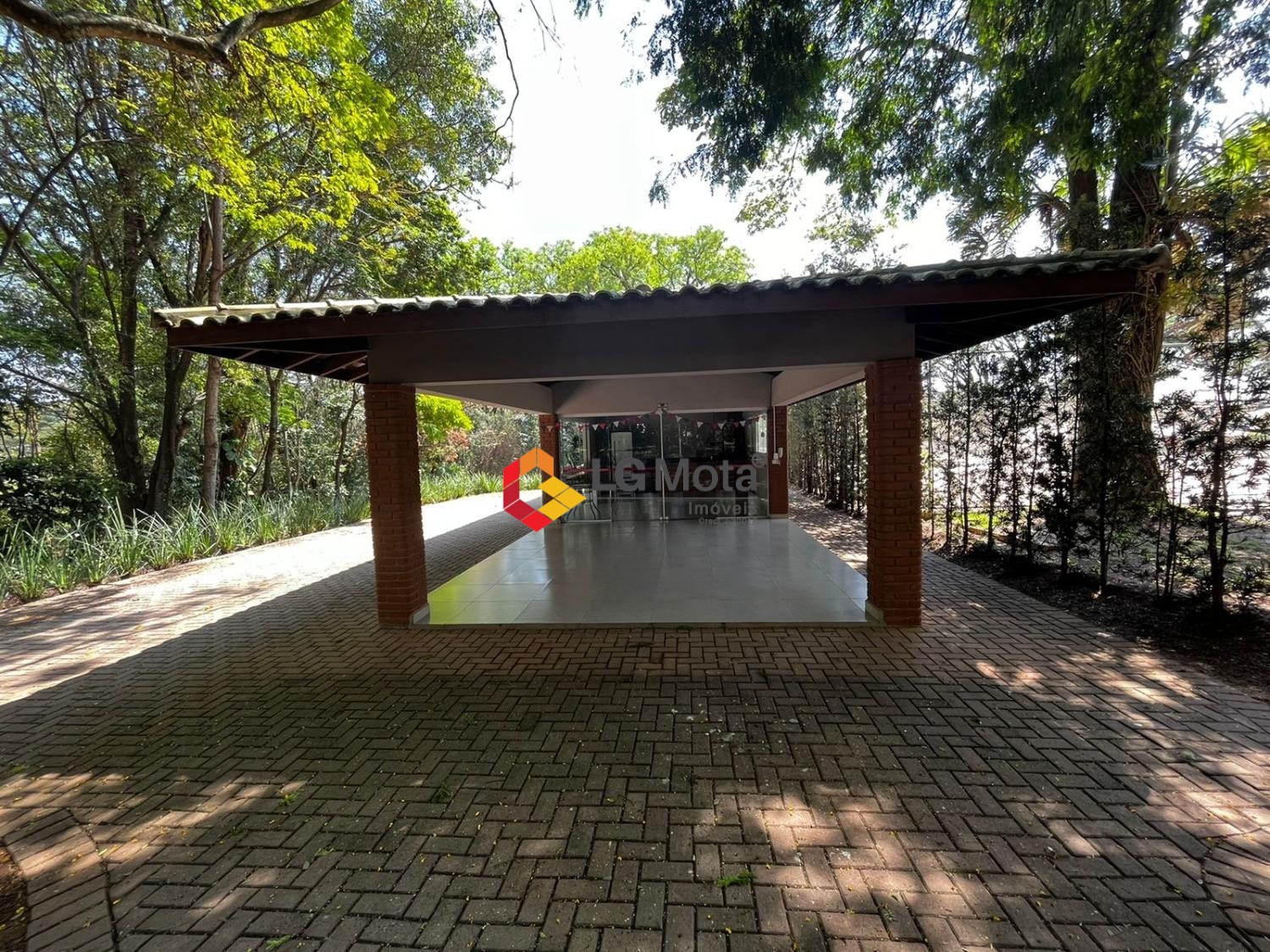Garagem para dois carros e duas motos coberta.