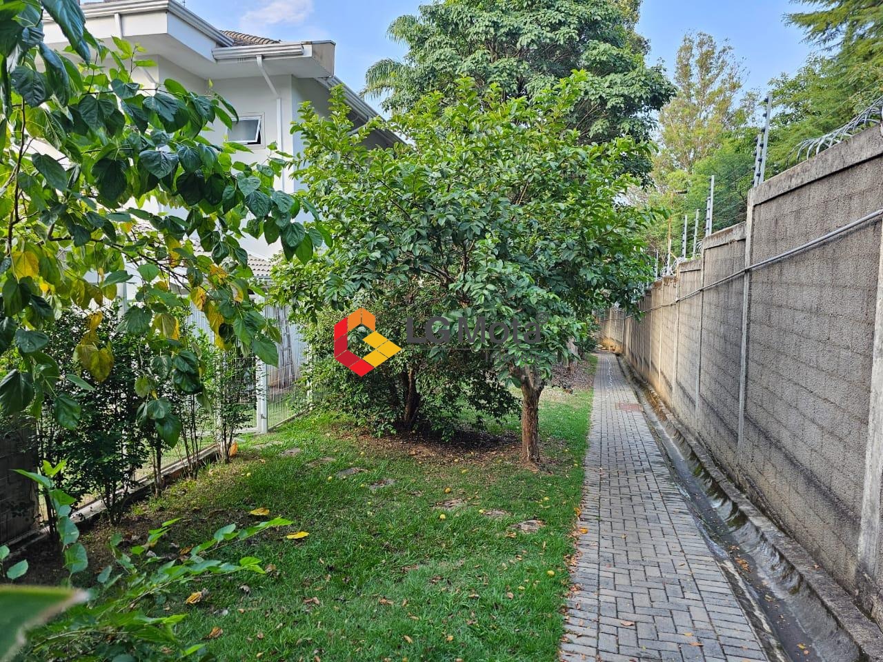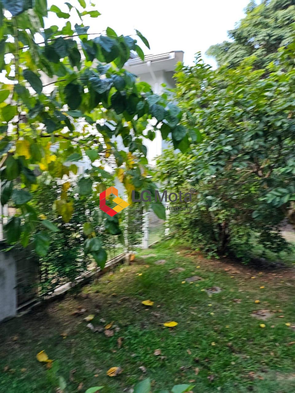 Área de servidão com arvores frutíferas e grama.
