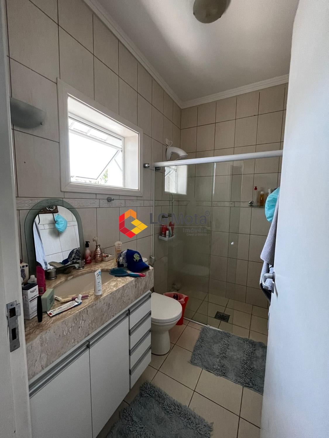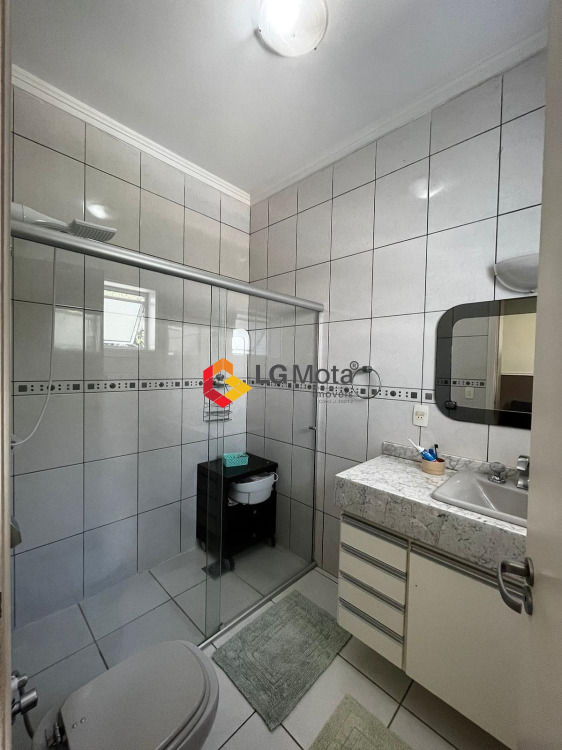 Gabinetes e box nos banheiros.