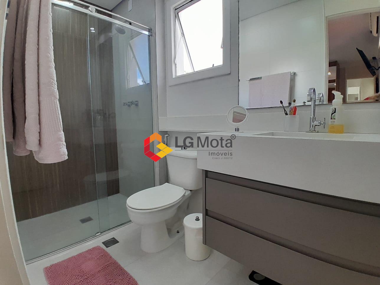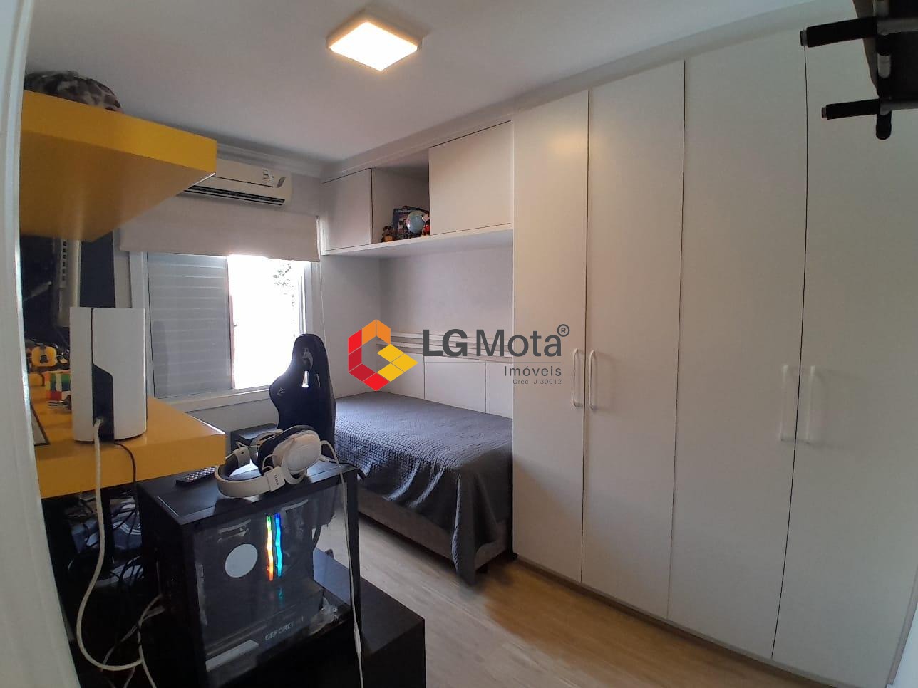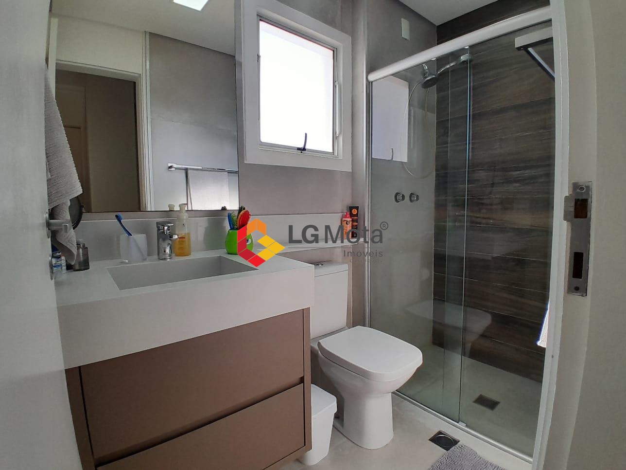 Com 3 dormitórios sendo 1 suíte, todos com armários planejados e ar condicionado, banheiro social e privativo, com gabinete e box blindex.