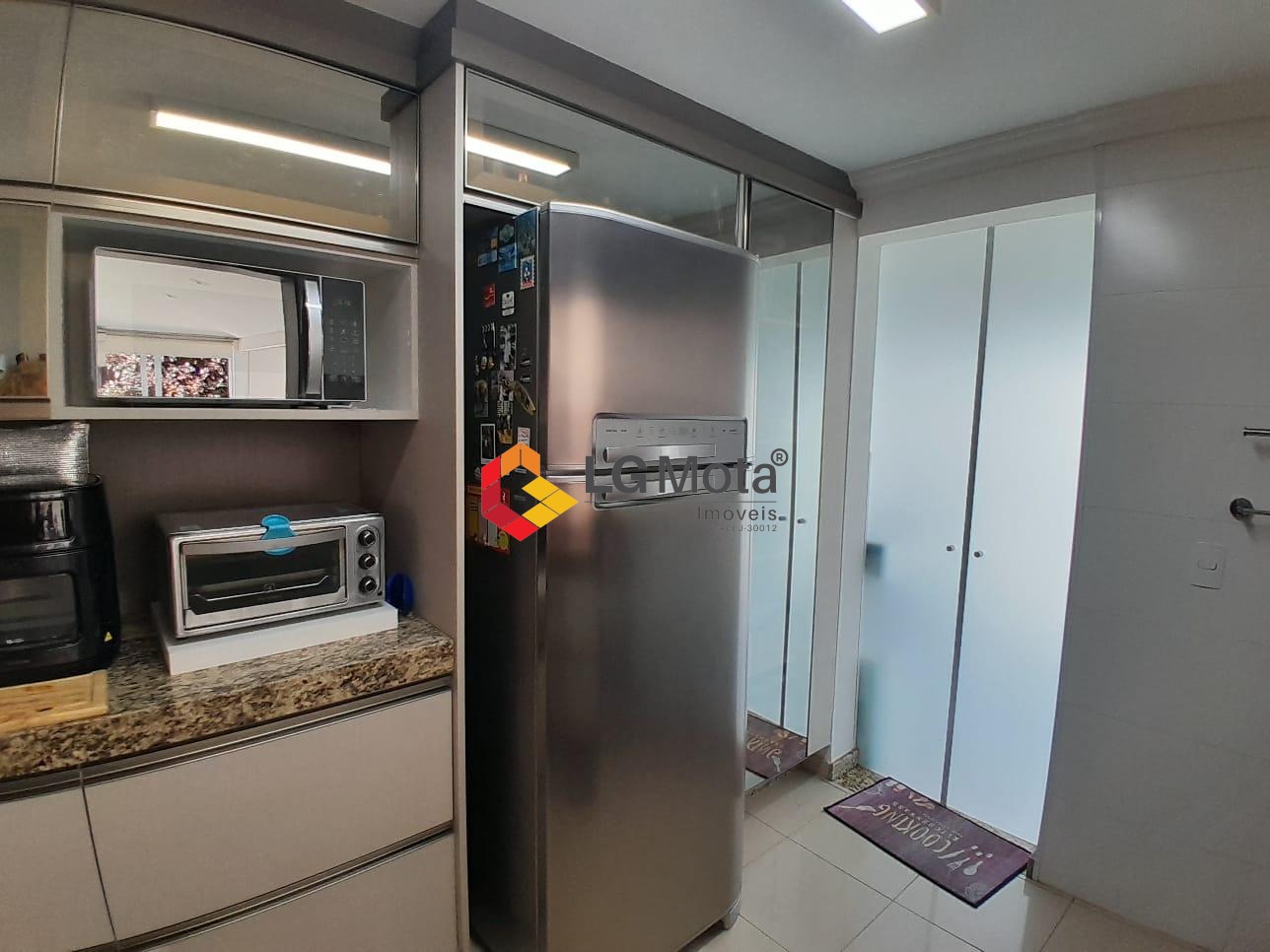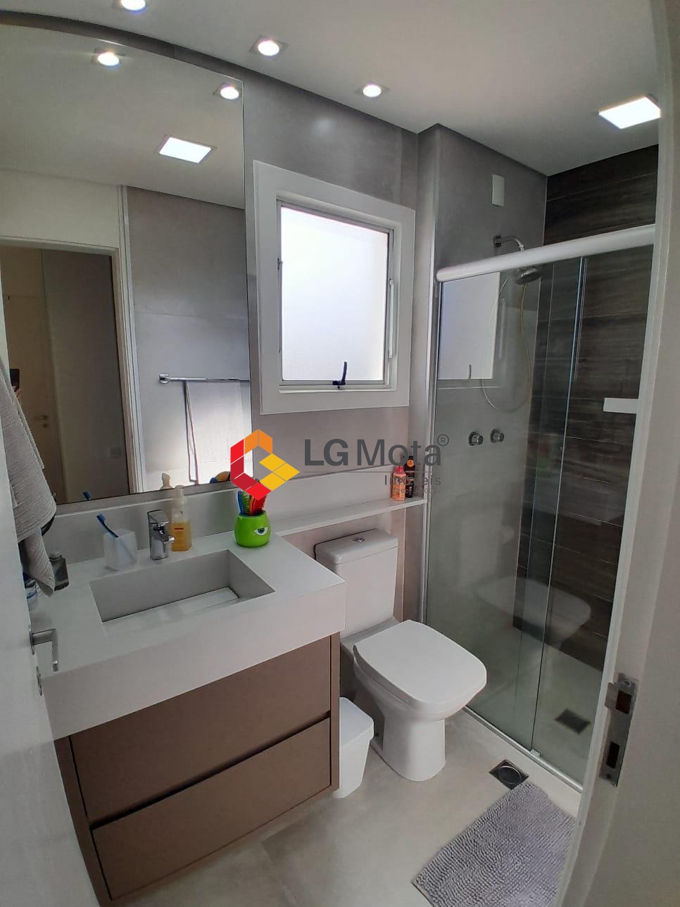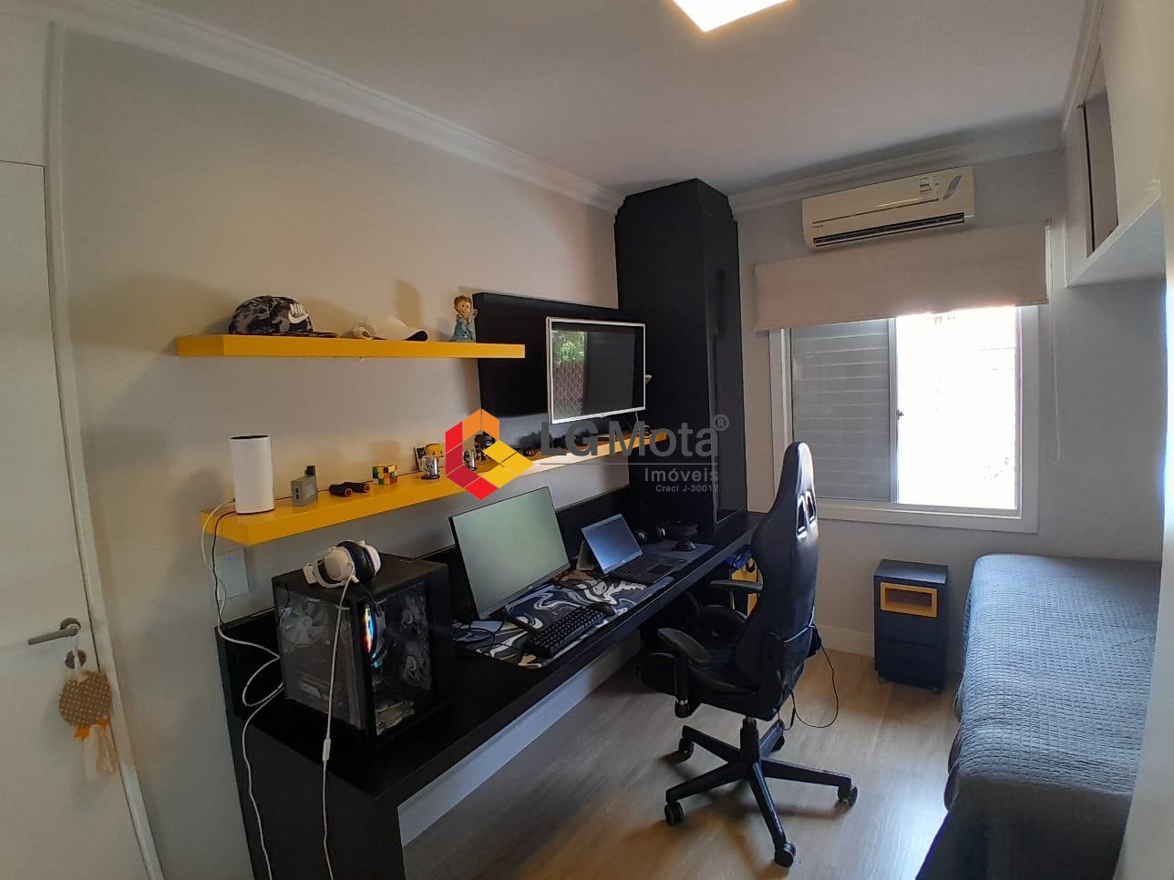 Com 3 dormitórios sendo 1 suíte, todos com armários planejados e ar condicionado, banheiro social e privativo, com gabinete e box blindex.