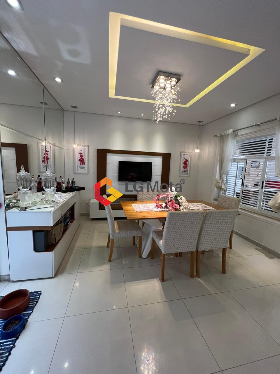 Living para 2 ambientes e sala de almoço, lavabo, cozinha ampla e completa, área de luz, área de serviço, despensa, entrada lateral, quintal grande com piscina, área de churrasqueira e edícula.