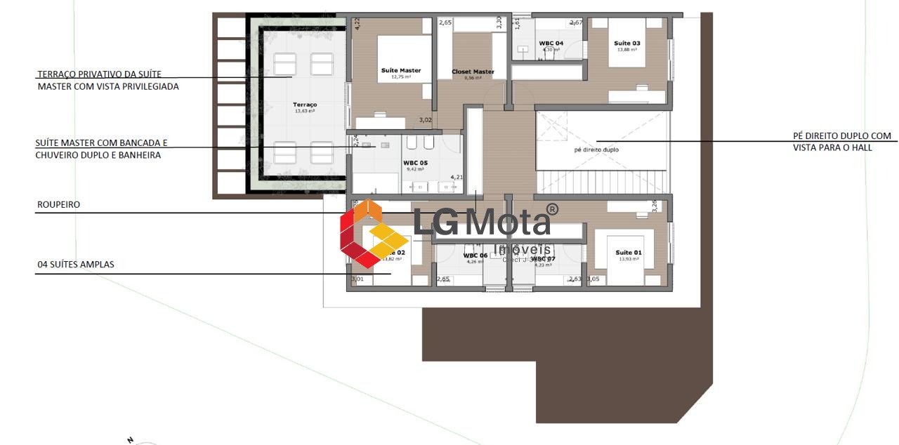 No pavimento superior, são 4 suítes amplas, sendo a master um verdadeiro refúgio: