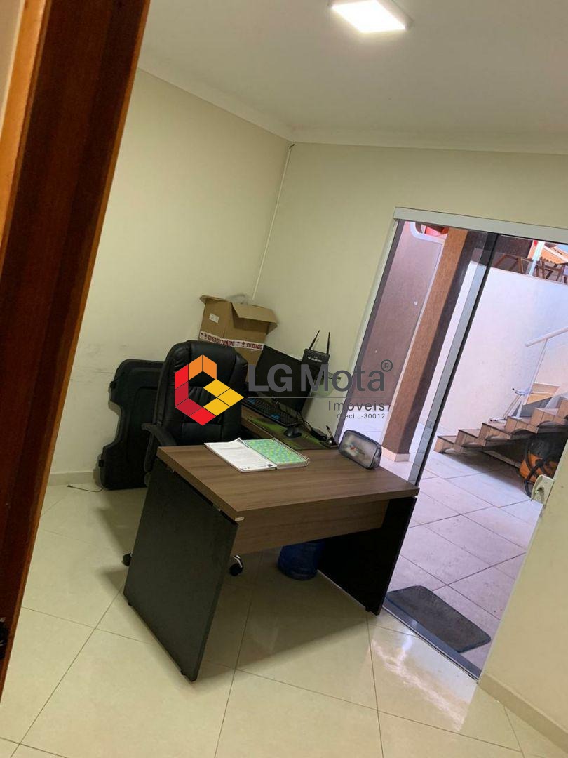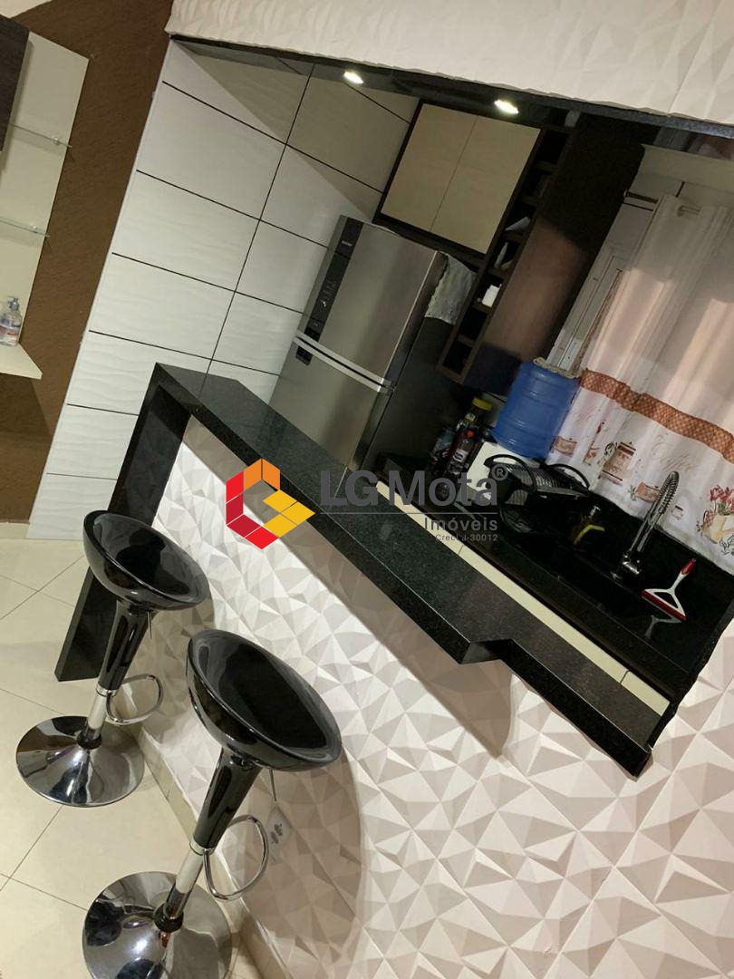 O imóvel possui portão eletrônico basculante, sala integrada à cozinha com detalhes em gesso 3D, cozinha americana com móveis planejados e bancada em granito, além de banheiro com box em Blindex. Conta ainda com varanda gourmet equipada com churrasqueira, bancada e pia, banheiro auxiliar e um cômodo adicional, que pode ser utilizado como escritório, despensa ou depósito.