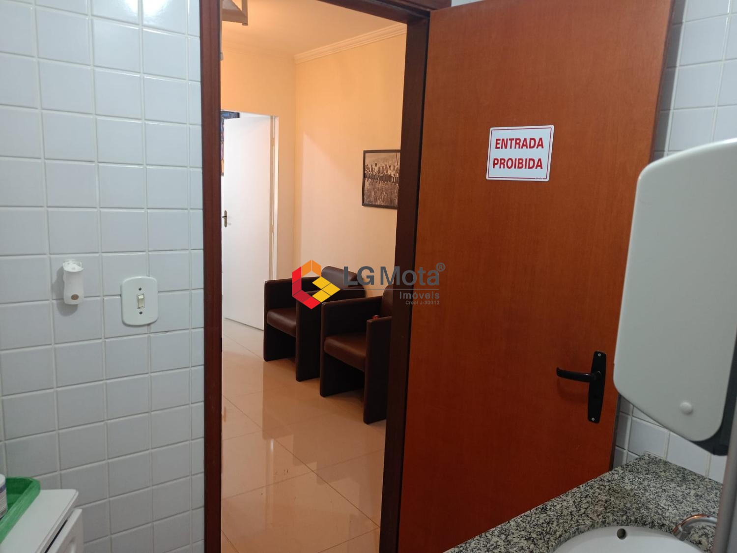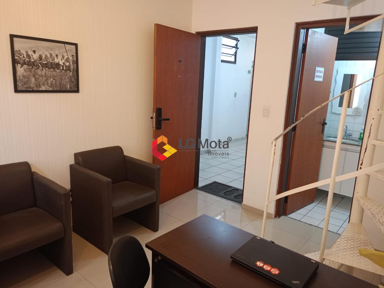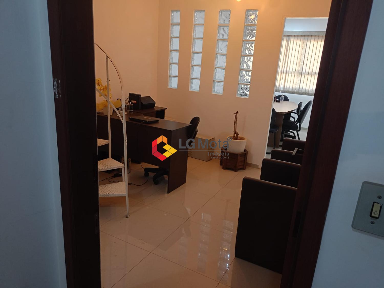 Com 79,25 m² de área total e 54,21 m² de área útil, o espaço conta com dois banheiros, duas salas de reunião e uma recepção compacta, oferecendo funcionalidade e conforto para diferentes formatos de negócio.