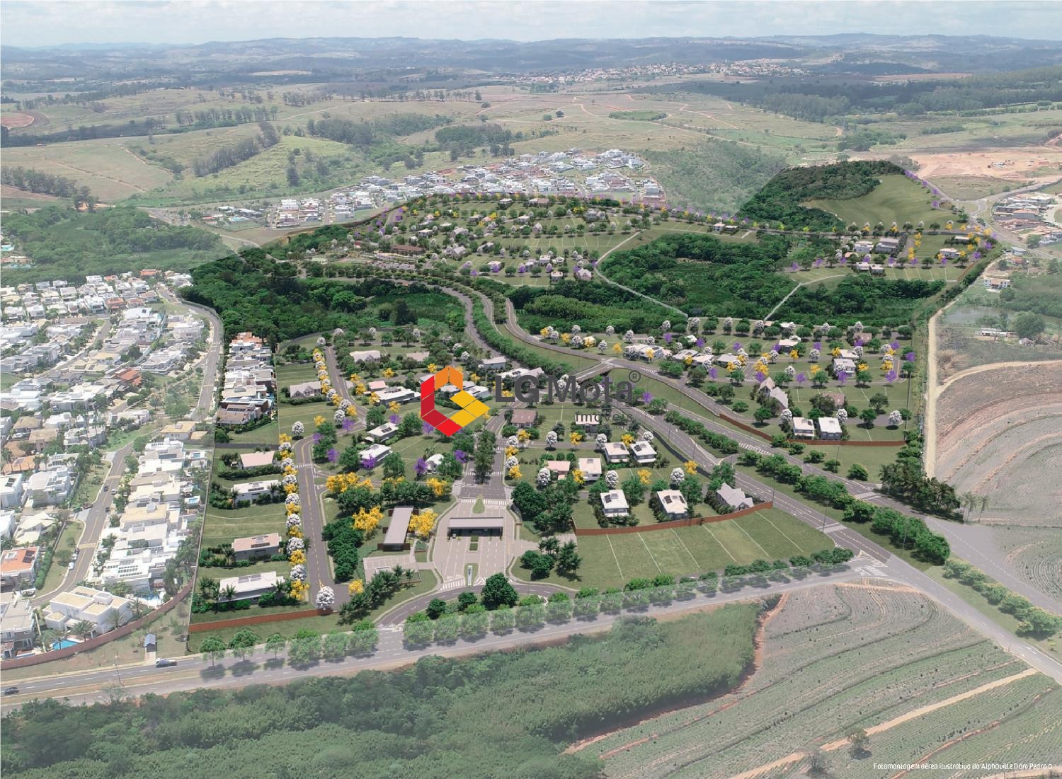 O condomínio oferece ruas e calçadas largas com acabamento exclusivo Alphaville, além de fiação elétrica interna subterrânea e segurança 24 horas na portaria. Desfrute de mais de 230 mil metros quadrados de área verde, incluindo córregos e lagos.