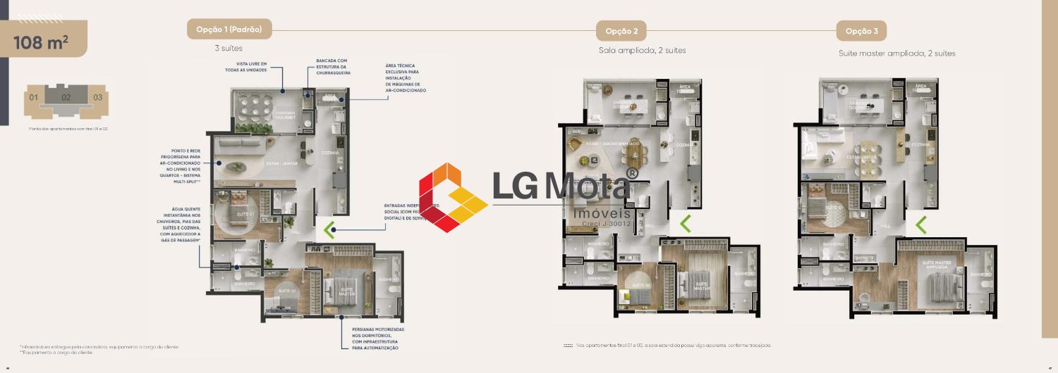 1, 2 dorm.1, 2 suíte(s)1, 2, 3 banheiro(s)