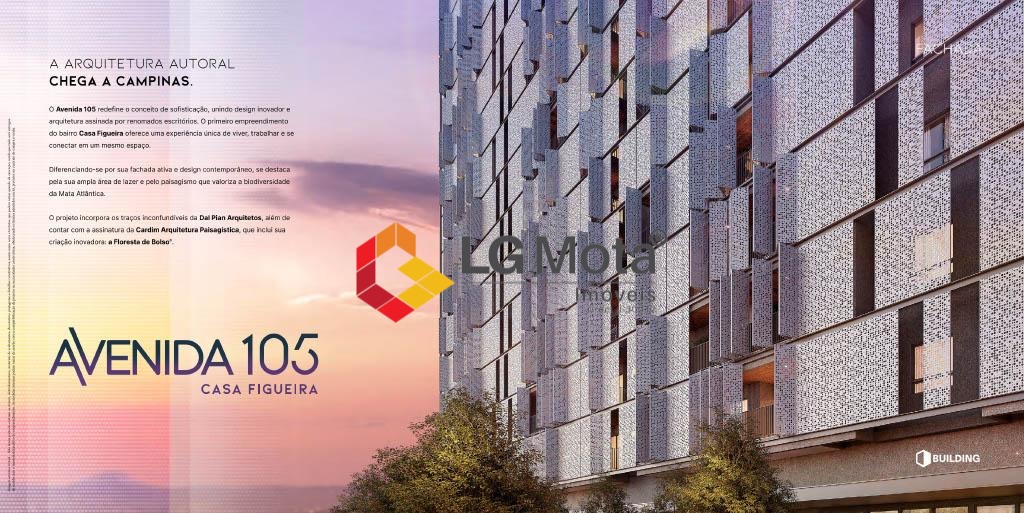O Avenida 105 redefine o conceito de sofisticação, unindo design inovador e arquitetura assinada por renomados escritórios. O primeiro empreendimento do novo bairro Casa Figueira, desenvolvido pelo grupo Iguatemi com 1 milhão de m² integrado ao shopping Iguatemi Campinas e com 240 mil m² de áreas verdes, seguindo tendências internacionais já consolidadas em Barcelona, Londres, Estocolmo e Hamburgo. Um bairro pensado para as pessoas, onde é possível morar, trabalhar, estudar, se exercitar e se divertir a distâncias caminháveis.