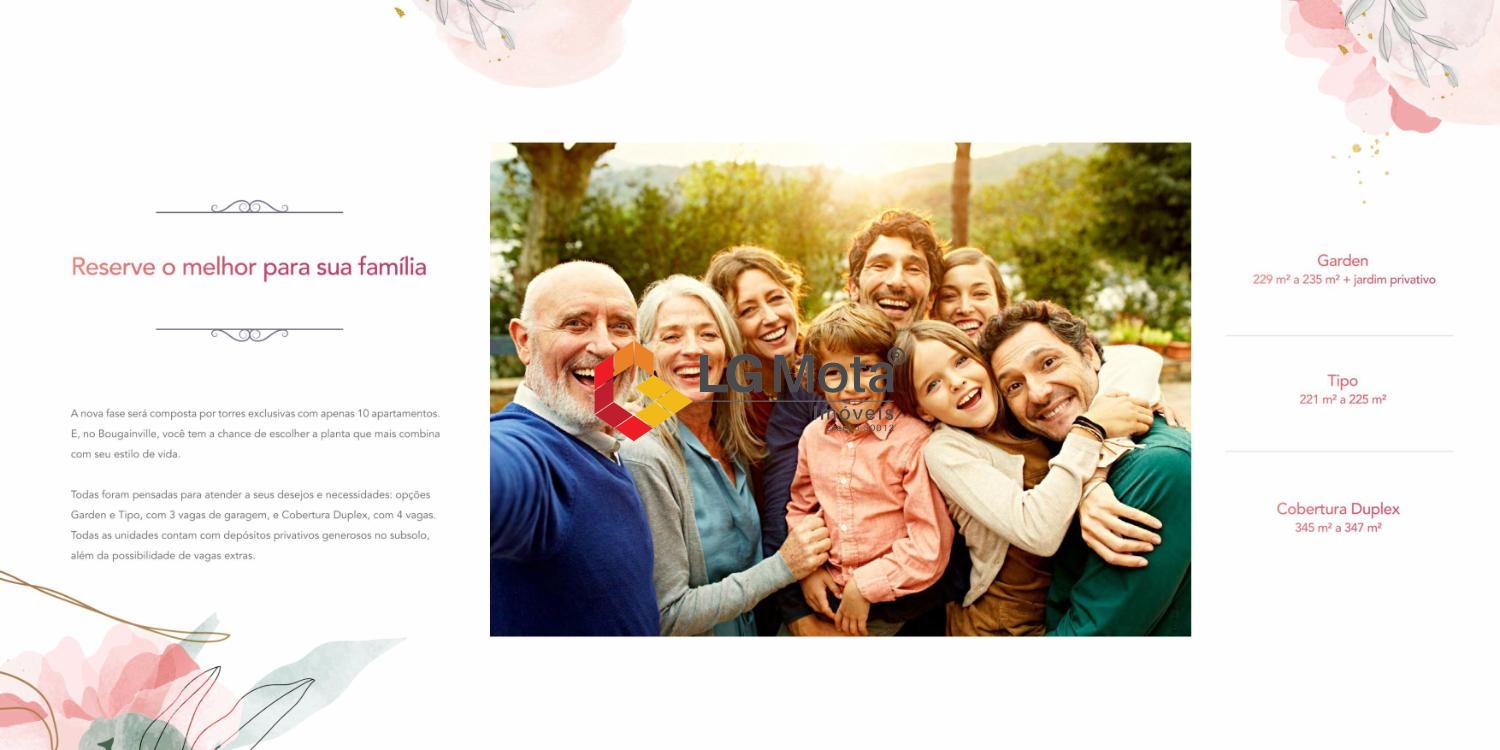 Desfrute do luxo e tranquilidade do Bougainville, com segurança máxima garantida por portaria blindada, monitoramento 24 horas, cerca elétrica e sensor de barreiras.