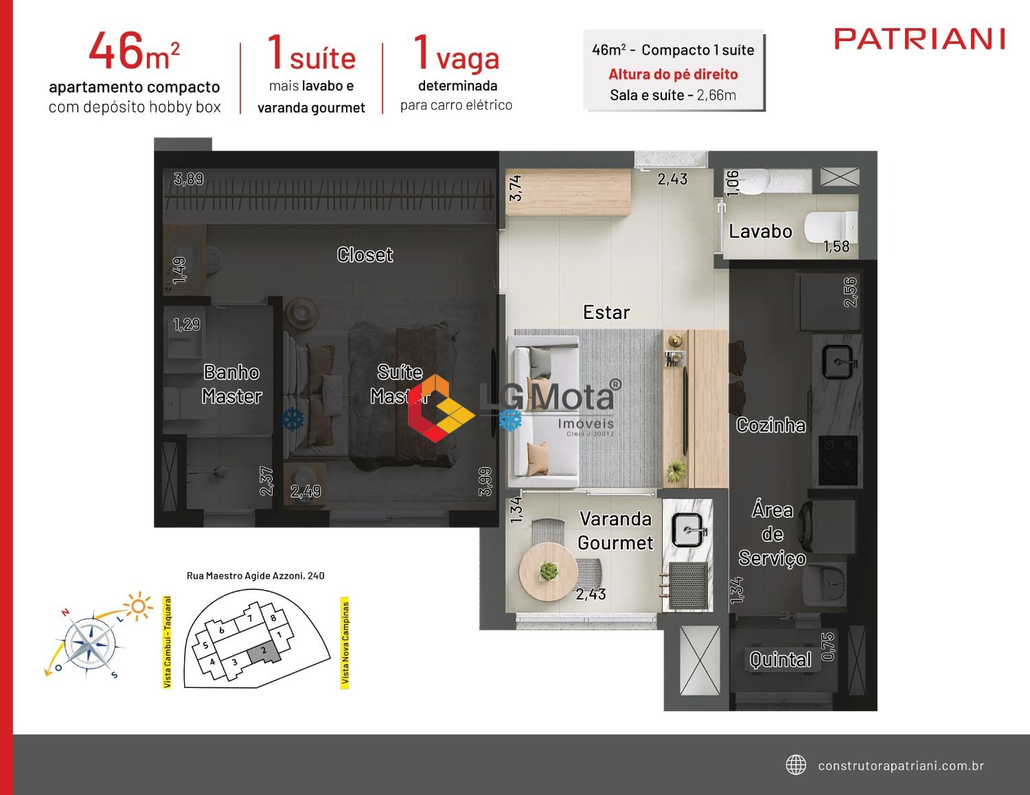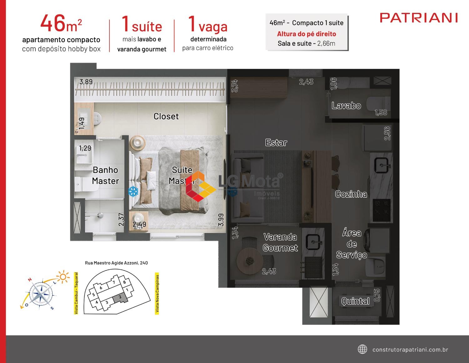 Também é uma excelente opção para quem investe em imóveis. Além de estar em uma localização privilegiada, na rua paralela à Norte-Sul e apenas a uma quadra do Cambuí, tem diversas características que fazem desse empreendimento uma referência em alto padrão tecnológico e em sustentabilidade.