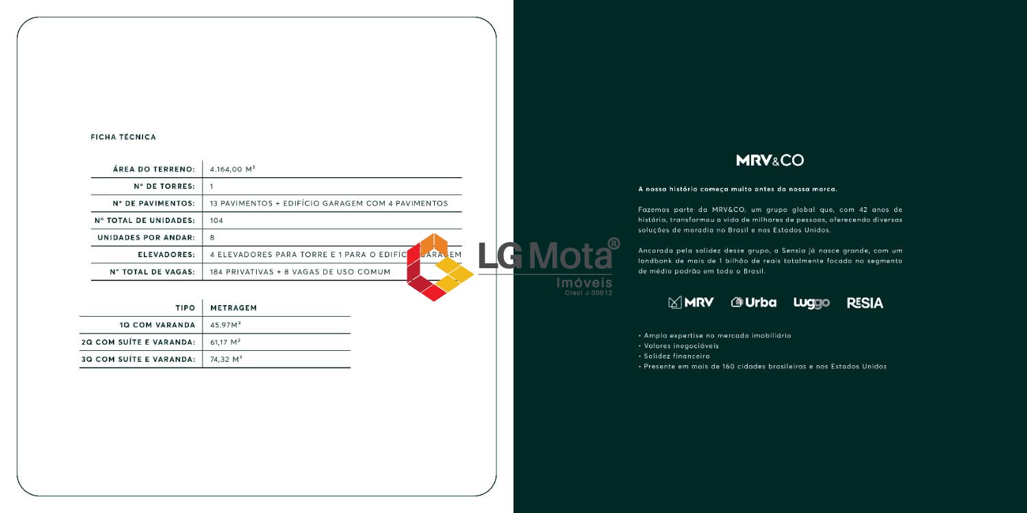 | Unidade | Dormitórios | Suítes | Banheiros | Vagas | Área Útil | Área Total | Terreno | Plantas |