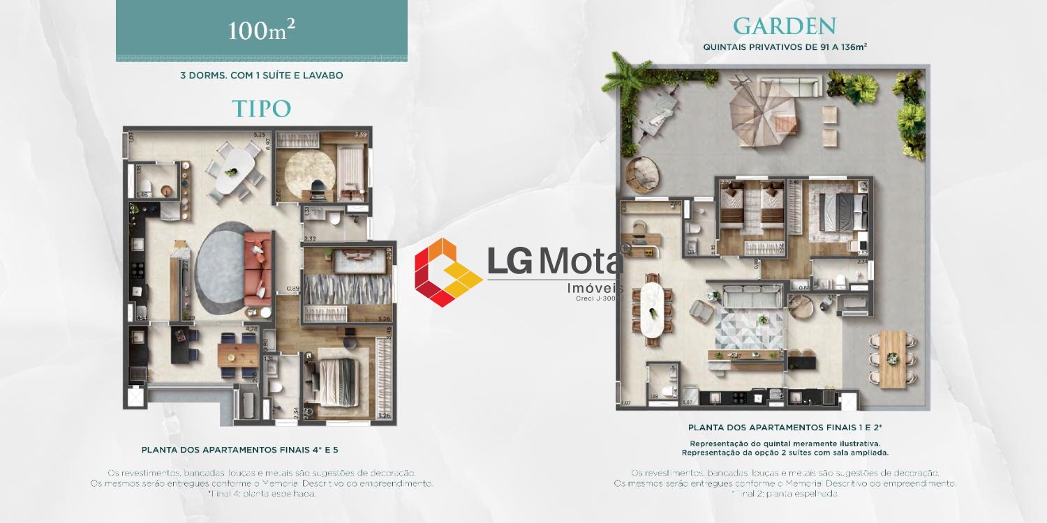| Unidade | Dormitórios | Suítes | Banheiros | Vagas | Área Útil | Área Total | Terreno | Plantas |