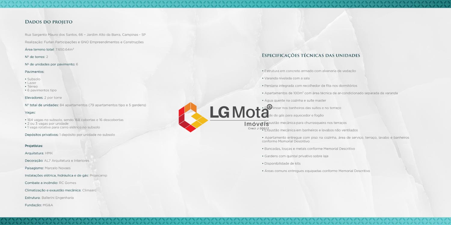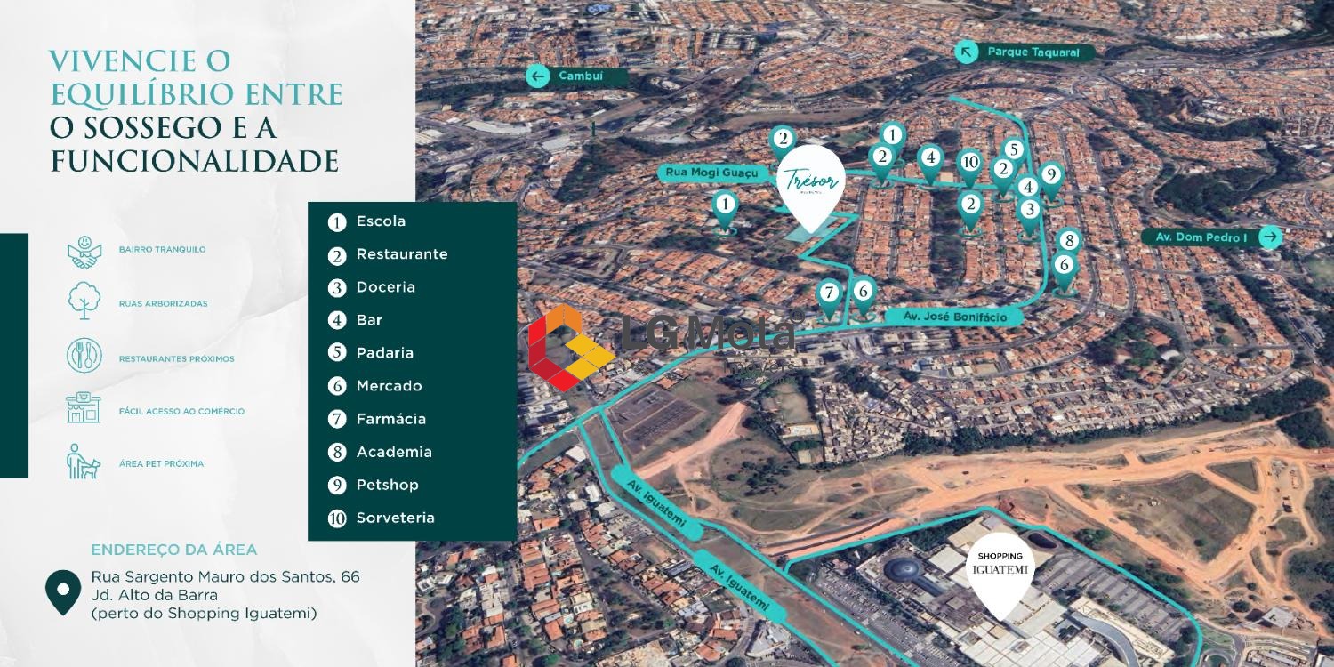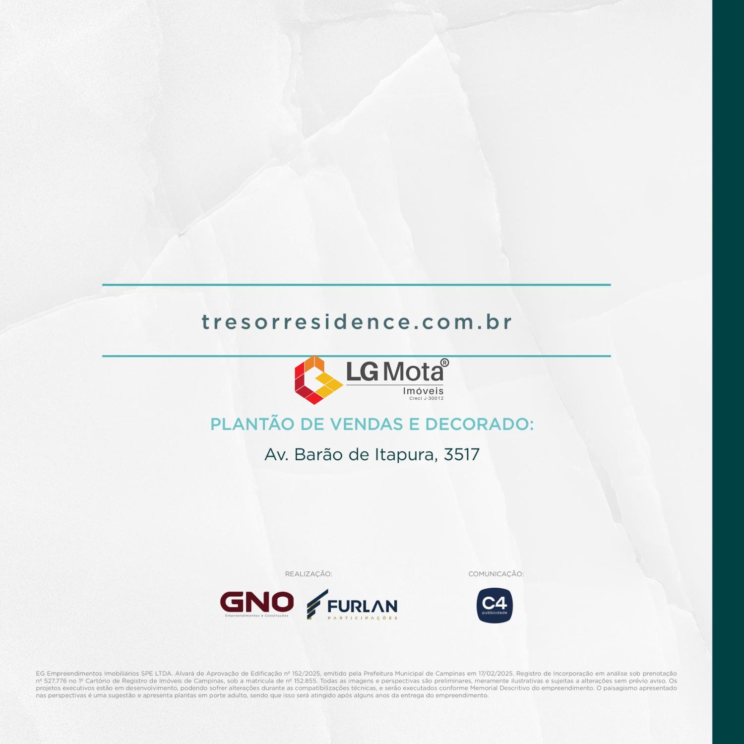 Trésor Residence Campinas, é um lançamento da Furlan Participações e GNO,localizado no Jardim Alto da Barra, a apenas 3 minutos do Shopping Iguatemi Campinas. Possuindo 2 torres em um amplo terreno de 7.650 m², o empreendimento traz exclusividade, conforto e sofisticação, além de oferecer apartamentos com plantas modernas, acabamentos superiores e lazer completo para todas as idades.